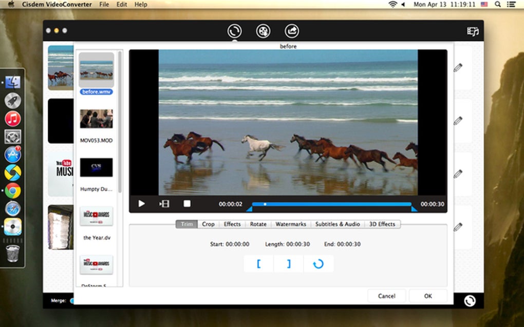 Cisdem VideoConverter para Mac le ofrece una solución todo-en-uno para el entretenimiento de vídeo. Te permite convertir el vídeo y audio entre todos los formatos populares, extraer pistas de sonido de archivos de vídeo, rasgar películas de DVD, e incluso descargar videos de sitios de vídeo populares. También puede realizar tareas simples de edición como recorte, rotación, recorte, añadir marcas de agua y subtítulos, hacer videos en 3D, etc.